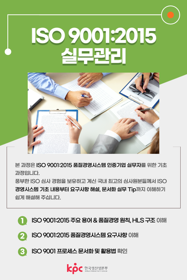 - ISO 9001:2015 표준 요구사항 이해 (운용, 성과평가, 개선)