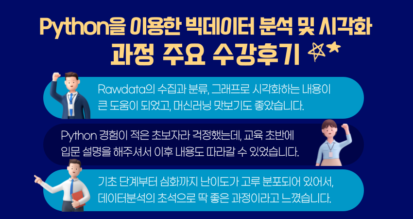 ■ 본 교육은 80% 이상 실습으로 구성된 과정이며 Python언어에 대한 사전 지식이 없는 분들은 수업이 원활하지 않을 수 있습니다.