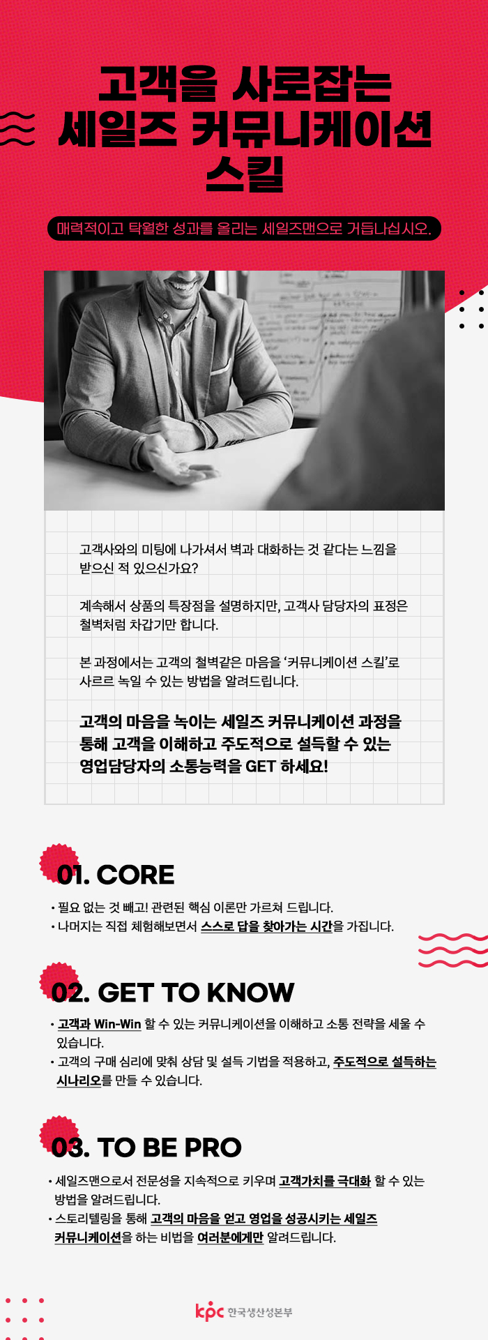고객의 마음을 녹이는 세일즈 커뮤니케이션 과정을 통해 고객을 이해하고 주도적으로 설득할 수 있는 영업담당자의 소통능력을 GET 하세요!