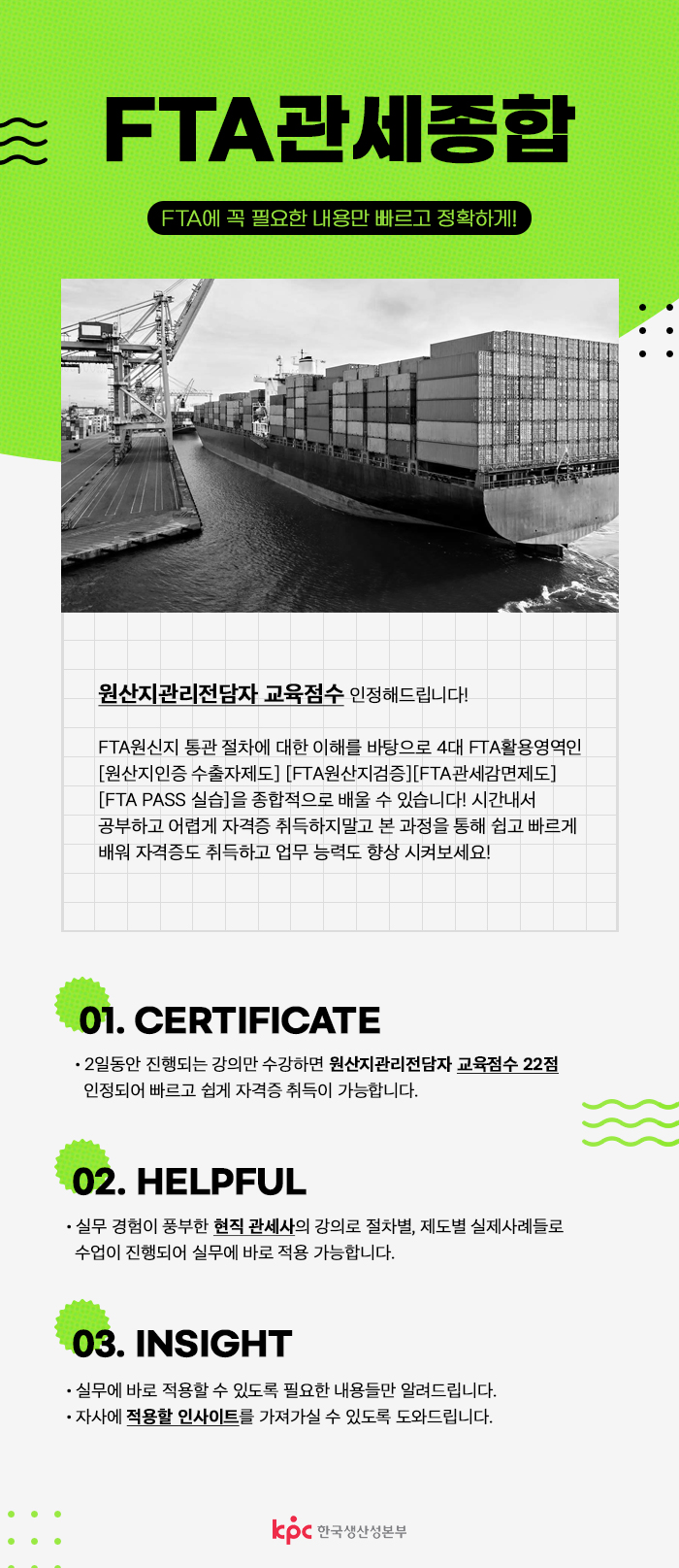 - FTA, 관세환급, 통관, 수출입, 해외시장개척, 해외바이어발굴, 원산지관리 등 무역거래 전반에 대한 이해와 개선에 관심을 가지고 있는 실무자 및 관리자