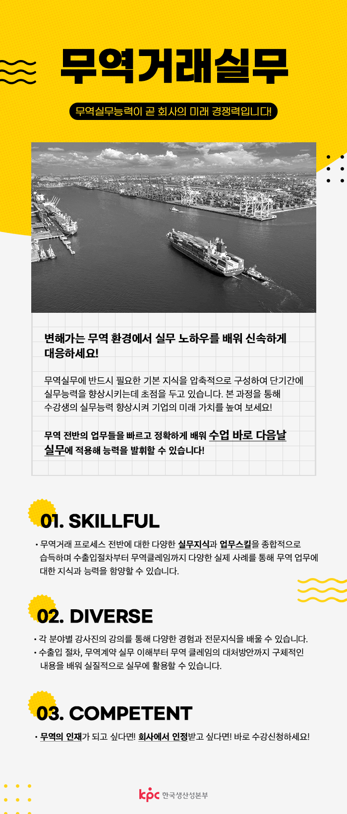 - 관세환급, 통관, 수출입, 해외시장개척, 해외바이어발굴, 원산지관리 등 무역거래 전반에 대한 이해와 개선에 관심을 가지고 있는 실무자 및 관리자