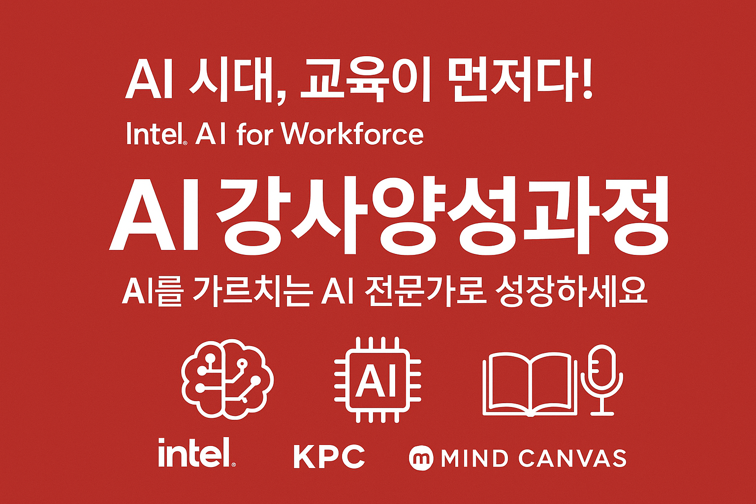 『Intel®의  AI for Workforce-powered by KPC 강사 양성과정』이라는 대학 및 기관을 위한 맞춤형 AI 전문강사양성과정을 개설하였으니 많은 신청 바랍니다.