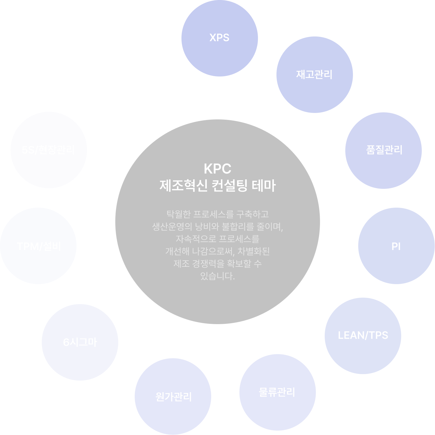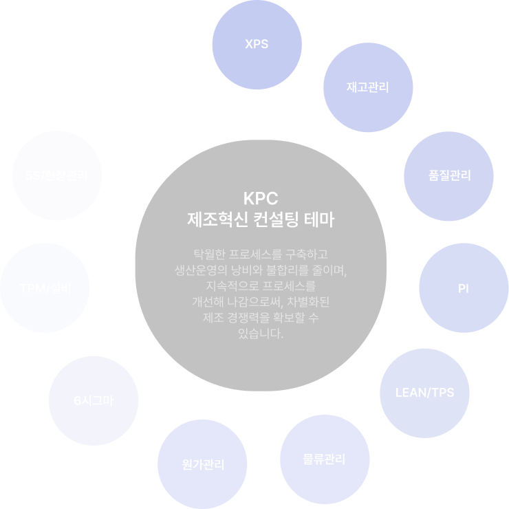 KPC 제조혁신 컨설팅 테마탁월한 프로세스를 구축하고 생산운영의 낭비와 불합리를 줄이며, 지속적으로 프로세스를 개선해 나감으로써, 차별화된 제조 경쟁력을 확보할 수 있습니다.
